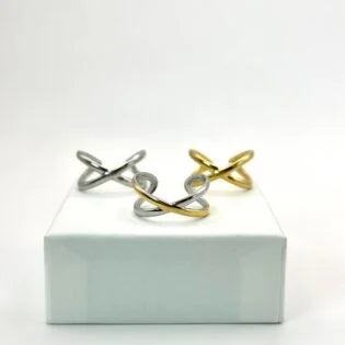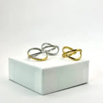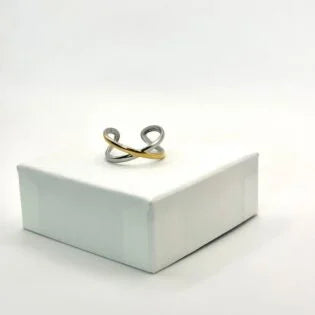 O anel Mel é composto por um padrão elegante cruzado à frente representando conexão e harmonia.