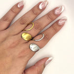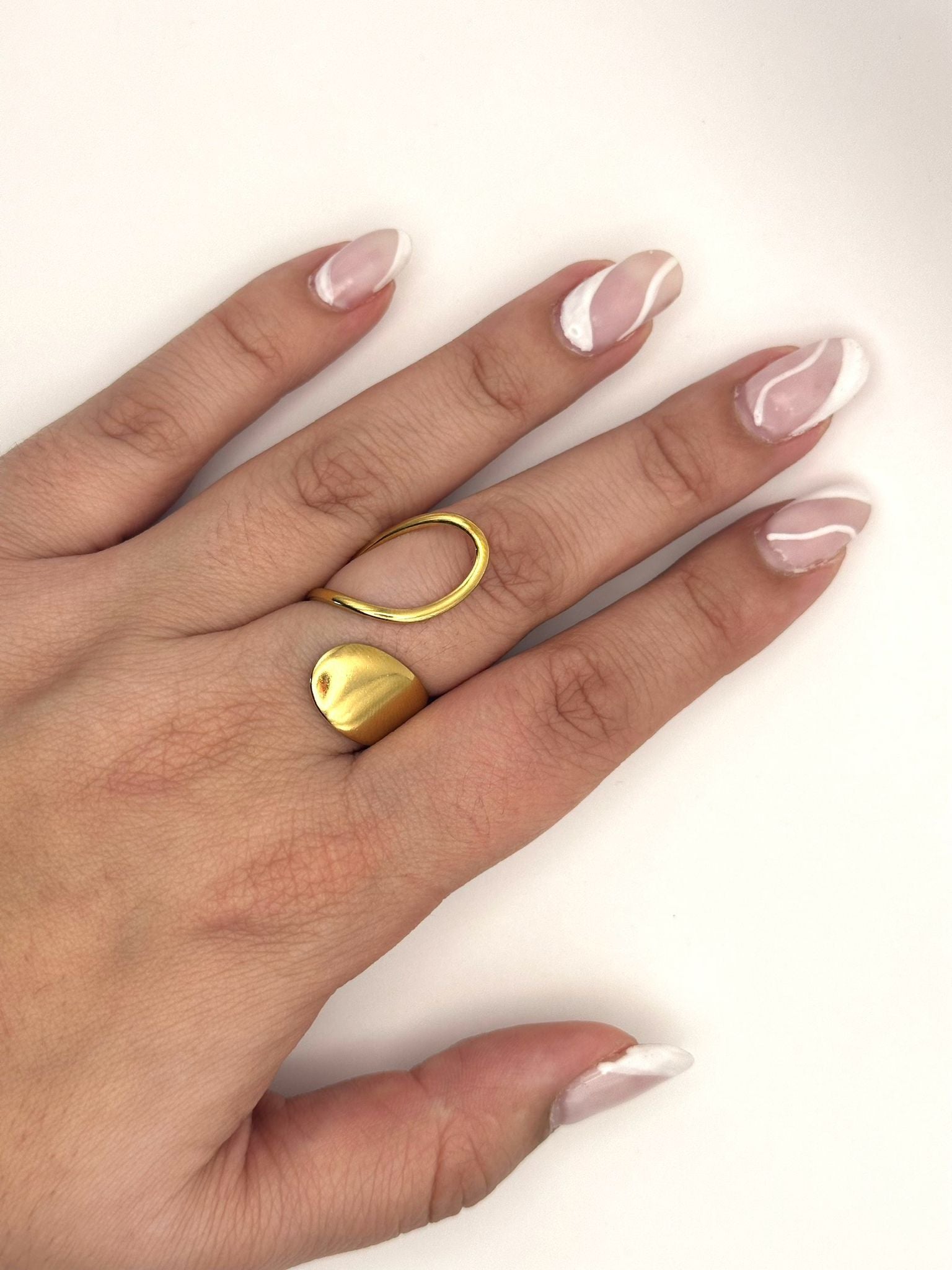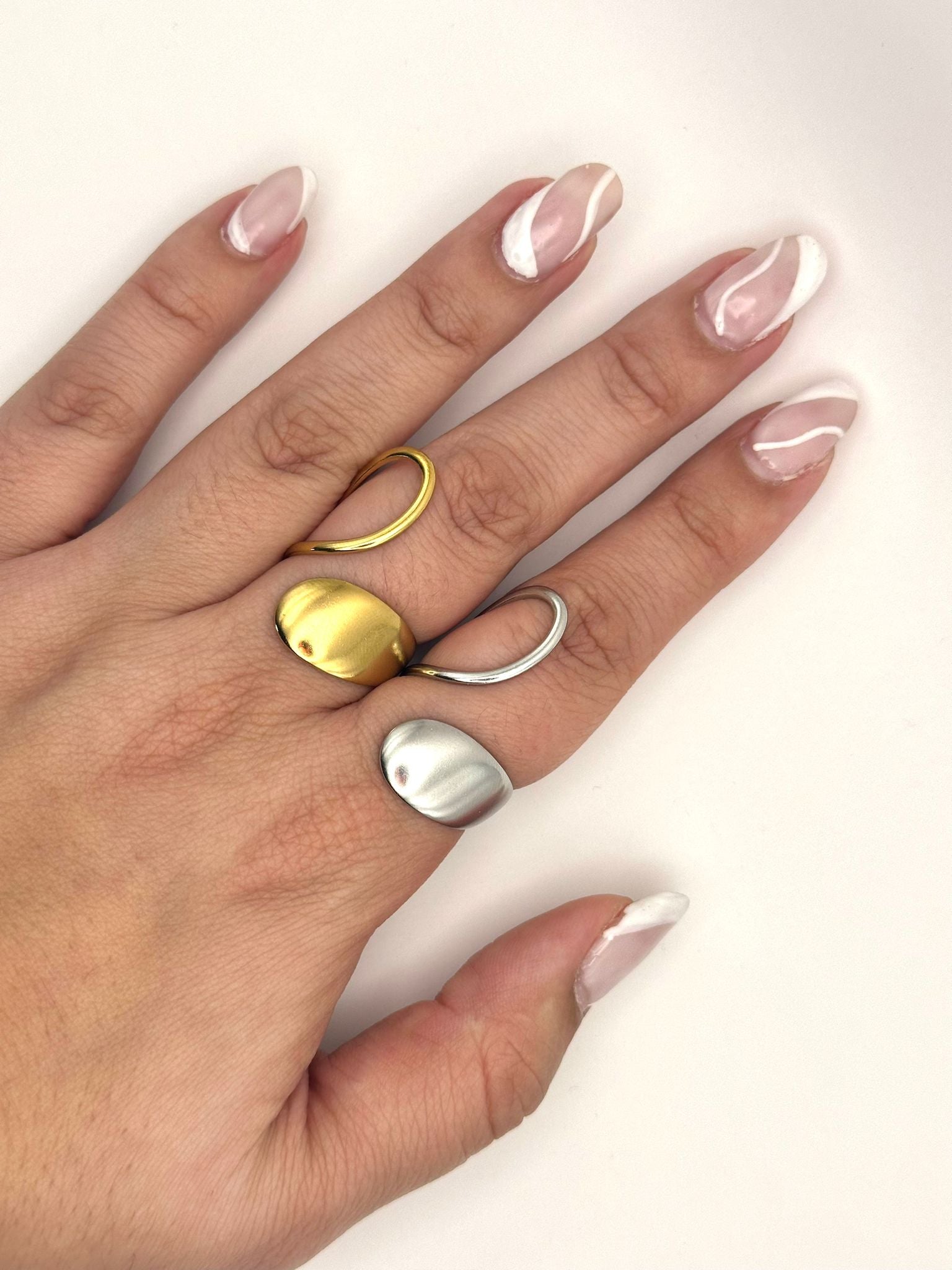 Produzido em aço inoxidável, é resistente, durável e ideal para o uso diário. O seu formato ajustável permite um encaixe confortável em diferentes tamanhos de dedo, tornando-o prático e versátil. Disponível em dourado e prateado, o Anel Lume pode ser usado sozinho como peça de destaque ou combinado com outros anéis para um look mais expressivo.