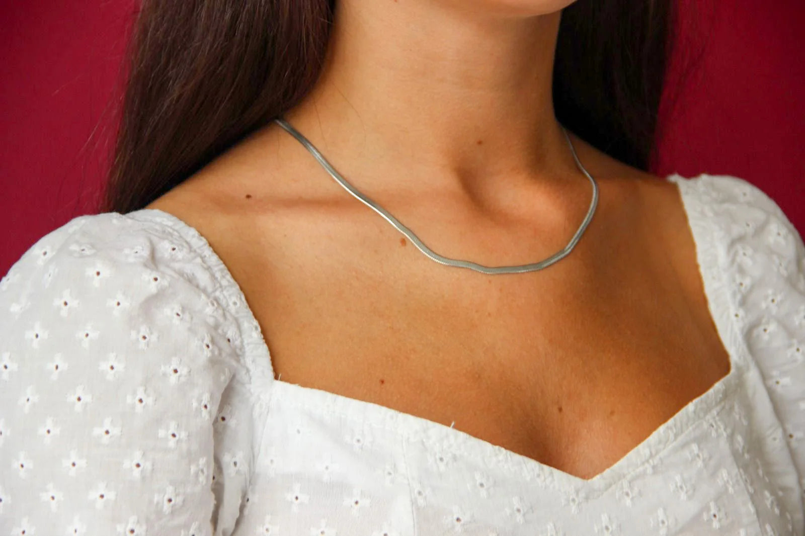 O colar Entrelaçado em aço inoxidável é um clássico e fica super elegante.