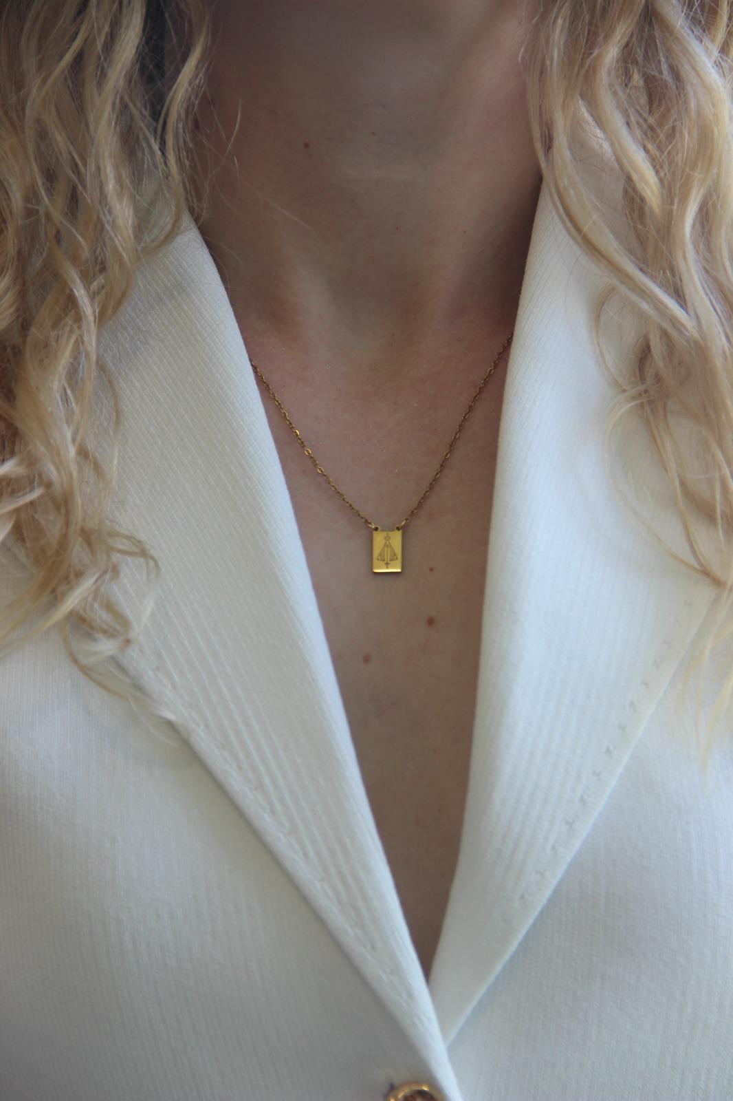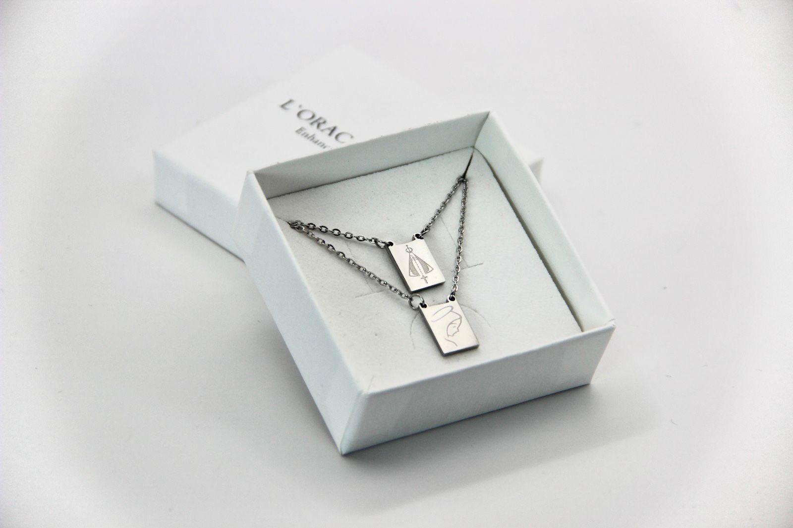 Elegante e cheio de significado, este escapulário combina símbolos universais de proteção. Uma peça versátil que une estilo e espiritualidade, perfeita para complementar qualquer look enquanto carrega uma mensagem de boas energias e proteção. Em aço inoxidável.