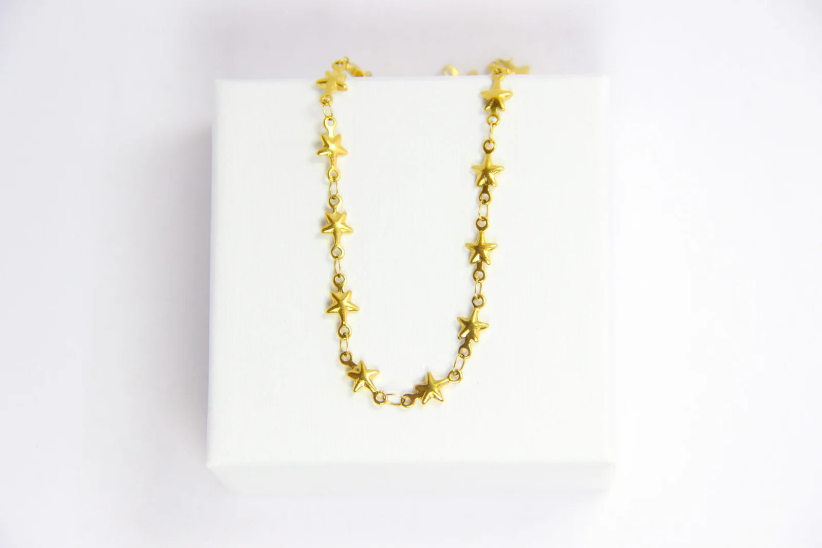 A pulseira de pé Estrelas dourada em aço inoxidável dá um toque único no tornezelo.